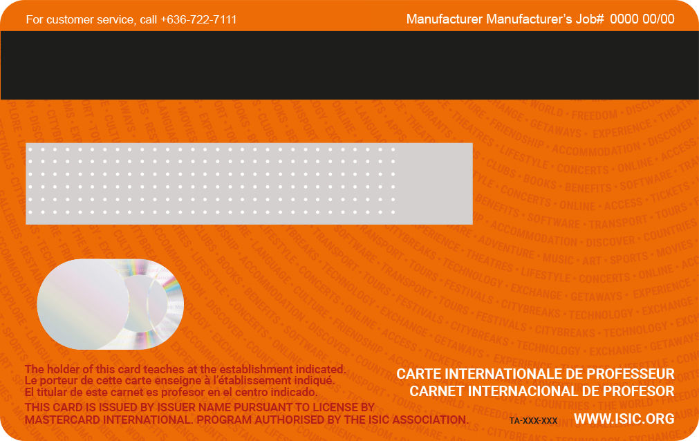 This ISIC Teacher Identity Card with Mastercard is ideal for educational institutions or businesses wishing to replace their traditional staff ID card with an internationally recognised, co-branded, debit card. Please contact our sales team for more information if you are interested in this excellent addition to your brand.